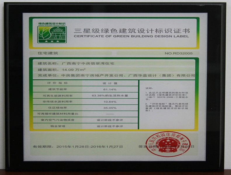 • 翡翠灣榮獲三星級綠色建筑設(shè)計標(biāo)識證書