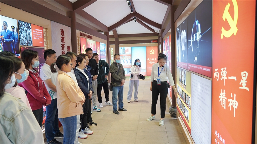 第一站,黨員干部們跟隨講解員依次參觀了中國共產(chǎn)黨人精神譜系主題園的“兩廳一廊一館”,講解員通過互動點播屏、全息投影系統(tǒng)、虛擬翻書系統(tǒng)等聲光高科技設(shè)備,引導(dǎo)黨員干部們對新民主主義革命時期、社會主義革命建設(shè)時期、改革開放和社會主義現(xiàn)代化建新時期以及中國特色社會主義新時代所形成的系列偉大精神進(jìn)行了沉浸式學(xué)習(xí)。在講解員的介紹下,大家沿著百年黨史的時光長河溯流而上,仿佛回到歷史情境中,細(xì)細(xì)品讀著先輩們從千磨萬擊中錘煉而來的偉大精神,這些偉大的精神不斷叩擊著大家的心靈,讓人心潮澎湃、感慨萬千,從中汲取了不斷前進(jìn)的力量。