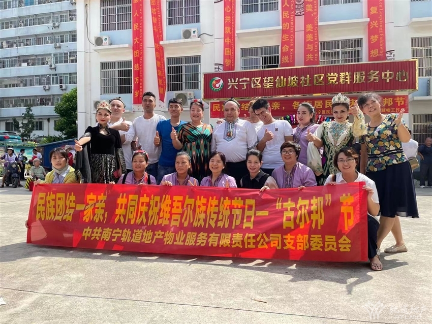 為弘揚民族文化,促進(jìn)民族團(tuán)結(jié),鑄牢中華民族共同體意識,結(jié)合中國共產(chǎn)黨成立一百周年的契機,望仙坡社區(qū)、新疆駐桂工作組、興寧區(qū)民宗局于2021715日上午在望仙坡社區(qū)廣場開展古爾邦節(jié)民族文化宣傳活動,軌道地產(chǎn)物業(yè)公司黨支部作為黨建聯(lián)盟單位,受邀參加此次活動,與各族群眾一起共同慶祝維吾爾族傳統(tǒng)節(jié)日--“古爾邦”節(jié)。